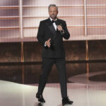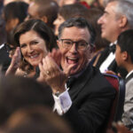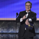 Stephen Colbert was the first person to take the stage to present the award during the CBS telecast at the Peacock Theater in Los Angeles despite the recent controversial cancellation of his show by the network. He was greeted by a rousing and lengthy standing ovation.