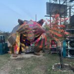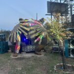 The raccoon proved to be the perfect spot for DJs to set up inside and spin music for the dance party. Colorful lights emanated from statue and bounced off its surface as sound systems pumped out the beats.