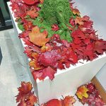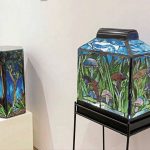 One incorporated real flower petals in between pressed glass. Another made a tree stump out of glass with red leaves.