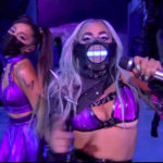 With an electronic mask, Gaga performed a medley of her songs, including “Stupid Love,” “Chromatica II” and “911.” She and Grande were joined by a number of background dancers all wearing masks.