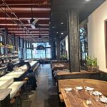 With a homey, approachable atmosphere, the space offers separate dining areas, large windows, ample light, original exposed brick, an expansive marble bar, exposed beams, a mix of leathers, woods and mixed metals that lend themselves to an industrial vibe.