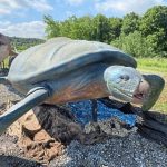 The animal figures are made of steel and silicone. They include details from feathers to scales to tails and teeth.