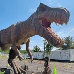 “We are a covid-friendly, family-friendly experience, and when you stay in your cars, you stay safe from the dinosaurs,“ said “Prehistoric” Nick Schaefer,” a show tour guide. “We also have some dinosaurs people can interact with.”