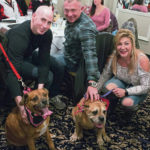 Shelter “Golden Girls” Peanut and Penny stop to visit (from left) Joe Barnes of Irwin and John and Beth Lenkey of Uniontown, during the Animal Friends of Westmoreland annual cash bash held Feb. 16 at Ferrante’s Lakeview in Hempfield.