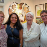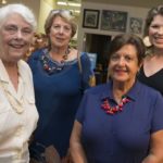 Event committee members, (from left), Sue Pollins, Pat Majcher, Peg Panasiti and Sarah Hunter, gather for photo during the reception for the first annual "Art Neighbors" a joint exhibition of Latrobe and Greensburg art centers, held at the Latrobe Art Center on Thursday evening, July 18, 2019.