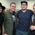 From left: Molly Zindash and Ken Nicholson, both of Greensburg, join Curtis Walbridge and Jess Higo Walbridge, both of Greensburg, for a photo March 9 during the opening reception of “Disconnections,” held at the You Are Here Gallery in Jeannette.