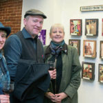 From left: Mary Ellen Raneri of Latrobe joins Larry Beaver and Rebecca Benson-Beaver of Jeannette for a photo March 9 during the opening reception of “Disconnections,” held at the You Are Here Gallery in Jeannette.