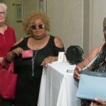 WCCC Black Awareness Committee members and officers, (from left), Vickie Hricik, vice-president, Cindy Williamson, secretary, and Gloria Cook, treasurer, gather for a photo showing some of the prize purses, during the WCCC Black Awareness Committee Heels and Handbags Designer Bag Bingo held in Commissioners Hall at Westmoreland County Community College in Hempfield on Thursday evening, June 20, 2019.