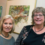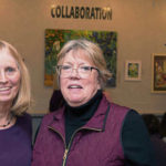 Exhibiting artists Susan Kiren (left) of Greensburg, GAC president, and Doris Wood of Greensburg pose for a photo during the opening reception for “Collaborations” on Feb. 1 at the Greensburg Art Center.