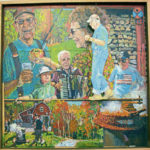 Art center member Rose Sovyak’s whole bridge group contributed a whimsical, bedazzled painting of a bicycle. Sovyak said that during games, whoever had the dummy hand (thereby sitting out that round of play) was required to work on the painting.