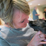 Maureen Cutrell of Greensburg interacts with one of the lab mix puppies available at the Humane Society of Westmoreland, during the Humane Society of Westmoreland County’s Breakfast for the Animals, held at the Christ Our Shepherd Center in Unity on Saturday morning, June 1, 2019.