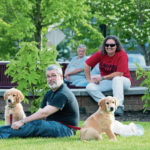 (From left) John and Christi Roddy of New Florence sit with their Golden Retriever puppies, Snickers and Sammy, during the opening night of the 70th annual Ligonier Sunday Band Concert Series, featuring the Ligonier Valley High School concert band, jazz band and percussion ensemble, held in Ligonier on Sunday evening, May 26, 2019.