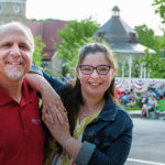 (From left) Scott Haines, Ligonier Valley Chamber of Commerce executive director, and Ruthie Stewart, events and marketing coordinator, pose for a photo during the opening night of the 70th annual Ligonier Sunday Band Concert Series, featuring the Ligonier Valley High School concert band, jazz band and percussion ensemble, held in Ligonier on Sunday evening, May 26, 2019.