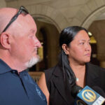 As Voigt’s hands were cuffed behind his back, he became unsteady and toppled toward the defense table. Sheriff’s deputies caught him, and, after several seconds, Voigt was able to stand on his own before being escorted from the courtroom.