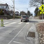 Crosswalks have been updated by being repainted with reflective material, and crosswalk signs are now fluorescent with arrows pointing at the crosswalks.