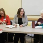 After the conference, Williams took time to chat with members of the Tea and Stitches crafting circle during their meeting at the library.