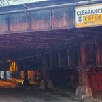 The top of the truck hit a train trestle, causing the crash. Two city workers were inside, and one was taken to the hospital with minor injuries and the other wasn’t hurt, Togneri said.