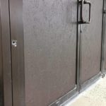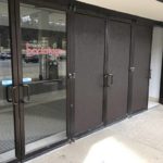 On Saturday, a mall maintenance crew was observed placing wooden boards over the glass-pane doors that had been shot. There was also a bullet hole in a metal separator between two doors.