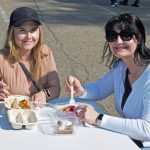 Vicki Bolen (left) and Melinda Juarin enjoy bites to eat on May 9 at the Bethel Park Farmers’ Market.