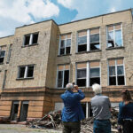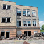 The building previously served students on South Walnut Street until the 1990s. It has gaping holes in the roof and numerous missing windows. Pieces of wood and other debris were lying on the ground .