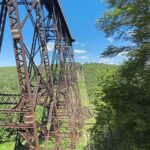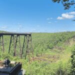 The skywalk stretches 225 feet above the valley floor at Kinzua Bridge State Park, about 145 miles north of Greensburg. It originally was built more than 100 years ago as a railroad bridge that crossed the valley, then the longest and tallest railroad structure in the world, according to DCNR. It was partially demolished in 2003 by a tornado, and twisted remnants of that destruction remain in the valley of the 339-acre park.