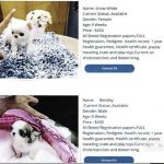 The woman submitted a request for information, investigators said, and on March 11, 2020, received a text message from a man who said that a dog named Pansy was still available for $500.