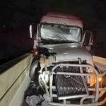 Crews were called to the 47-mile marker of I-70 around 4 a.m. after a tractor-trailer struck a highway maintenance vehicle and was disabled along the Yough Bridge, fire officials said.