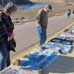 Ray Jakomas, a longtime resident of Addison Township, Somerset County, whose home overlooks the Great Crossings site, was on hand to present visitors a display of historic images of the bridge and the vanished town. Jakomas, who said he assists the Army Corps as a volunteer, spread his photos along a ramp that normally is used to launch boats into the lake but now is high and dry — a good hike away from the bridge and the shallow waterway.