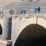The 206-year-old bridge is exposed because of the dry spell, and there’s been a steady stream of sightseers who flocked to — and past — the bridge’s Somerset County entrance Monday.