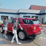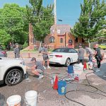 Students and boosters made about a dozen or so cars cleaner at the Herbst Texaco Station at the corner of Thorn and Walnut streets on Sept. 17.