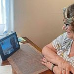 Linda Sovich Vaccaro (right) of Sewickley talks with her sister Pamela Kay Peters Hustus of Lebanon, Conn. through Facebook messenger on May 13.