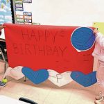 Students helped the celebration by making a card, putting their fingerprints on a flag and listening to stories from retired teacher Mary Coperich.