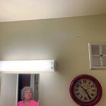 One bullet appeared to pass through the wall near the top of her bedroom window, bounce off her ceiling then continue through the wall above her closet, through the hallway walls and into the bathroom.