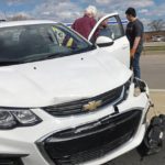 The Sonic, which, ironically she had purchased at Nick’s, smashed into a new Chevrolet Tahoe parked in the Nick sales lot right next to the road.