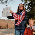 Protester Heather Bell of O’Hara brought her son Jason, 6, along for his first protest.