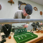 Harp and Hound Jewelry brings Celtic-inspired designs to Blawnox Joyce Hanz Thursday, Dec. 19, 2024 8:01 a.m. | Thursday, Dec. 19, 2024 8:01 a.m. Go Ad-Free Today! Louis B. Ruediger | TribLive Dan Jacko, owner of Harp and Hound Jewelry in Blawnox, showcases some of his handcrafted pendants. He specializes in Celtic design. Louis B. Ruediger | TribLive Dan Jacko says he was going for an Irish pub vibe for his brick-and-mortar venture in Blawnox. The shop opened Dec. 7. Louis B. Ruediger | TribLive Dan Jacko, owner of Harp and Hound Jewelry, works on a pendant in his shop in Blawnox. Louis B. Ruediger | TribLive Dan Jacko, owner of Harp and Hound Jewelry, makes a few adjustments to a display case. Share this post: Facebook Twitter LinkedIn Reddit Email