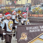 Marching bands pounded the pavement as they performed spirited Christmas staples, including more offbeat offerings like the theme from “The Grinch Who Stole Christmas.” Many laminated their sheet music or tucked them into rain-proof, plastic sleeves they mounted to their instrument with a metal lyre, or music holder.