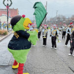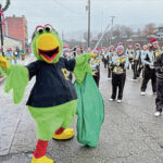 “It’s been decades — I remember marching like this when I was in the band here,” said Beresik, who played the trumpet while walking in the parade 30 years ago. “We’ve had icy streets. We’ve had valves on instruments frozen because it’s so cold. It comes with the territory.”