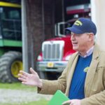 Wearing his Serakowski Farms cap, Mark Critz of the Pennsylvania Department of Agriculture speaks on Sept. 26.