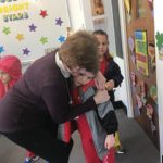As they line up to leave for the day, she helps them zip their coats or tie their shoes … and then makes sure to send them off with a hug.