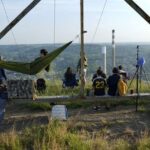 A crowd gathers at the Barking Slopes Conversation Area to watch the implosion of the Cheswick Generating Station smokestacks in Springdale.