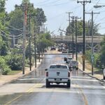 Utility poles and power lines in Springdale were damaged when the Cheswick Power Station smokestacks were imploded.