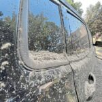 John Shanty of Cheswick spent his early afternoon Friday using a leaf blower to get dust from the implosion off of his porch, car and yard. John Shanty of Cheswick spent his early afternoon Friday using a leaf blower to get dust from the implosion off of his porch, car and yard.