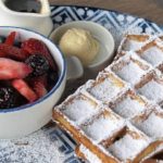 The Belgian Waffles ($8) turn heads here. Giant powdered sugar sprinkled waffles with Vermont maple syrup and whipped butter (add fresh berries for $3) are a must-try says Rocco.