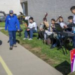 The sophomore from O’Hara played both the saxophone and the piano as people approached the entrance to the O’Hara Elementary School polling site.