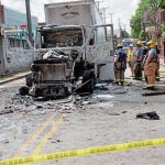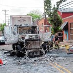 “The driver loaded up in Ohio. He got up here and somebody said, ‘Your truck is on fire,’ and he blew it off,” Springdale police Chief George Polnar said. “He looked out the rear-view mirror and saw the flames on the passenger side. You could see the smoke coming up over the top of the buildings. When the tires popped, you could see onlookers taking cover.”
