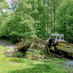 Tom Iseman, vice president of Roaring Run Watershed Association, drives across a foot bridge while inspecting a section of the trail on Tuesday, June 25, 2019.
