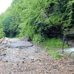 Debris spills out on the washed out Butler-Freeport Community Trial in Buffalo Township. The damage was caused by recent heavy rains.