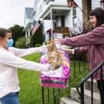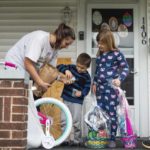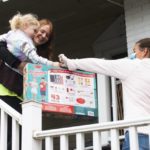 Kristen Readd took a photo of her 6-year-old daughter Aubrey on their Elm Street sidewalk as the caravan stopped in front of their house and dropped off a basket.