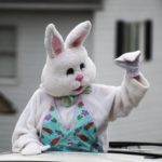 Volunteers wearing masks quickly pulled baskets out of vehicles and delivered them to front doors of about 100 children. Ten area businesses sponsored the event and Councilwoman Kathy Hopkins donned the bunny suit.